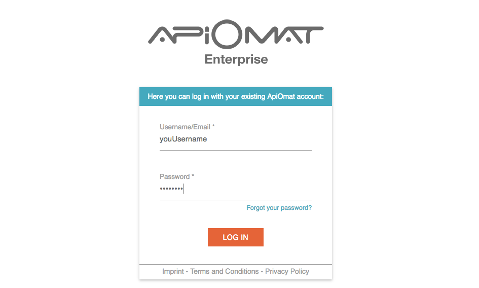 1. Log into your account. If you don't have an account, contact the administrator of the ApiOmat instance from your company.