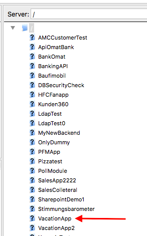 When connected succesfully, the right panel will show all applications currently deployed on this server. Search for your application