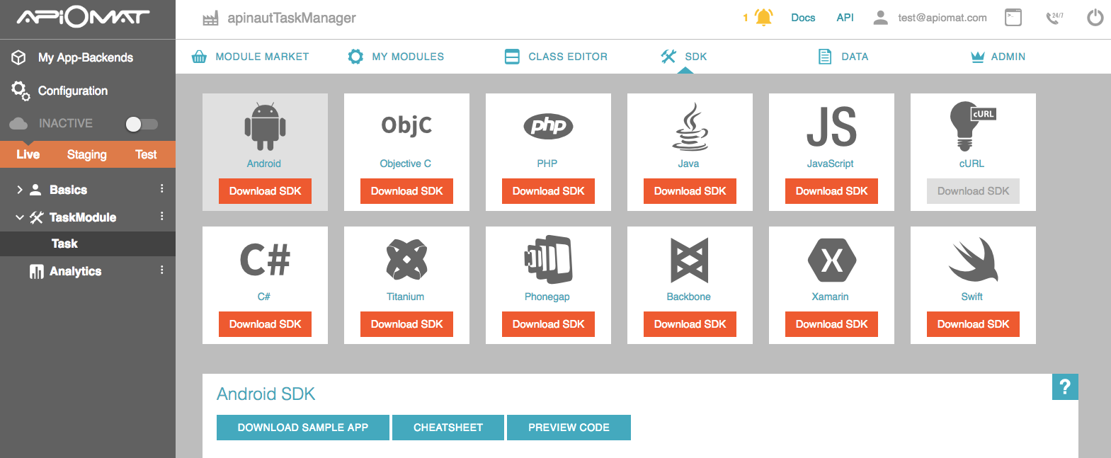 1. Sign Up or log in with your existing account here to start using ApiOmat.