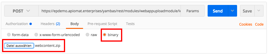 https://epdemo.apiomat.enterprises/yambas/rest/modules/webappuploadmodule/VacationApp/spec/upload?customer=epdemo&jspath=webcontent/build/Example with Postman
