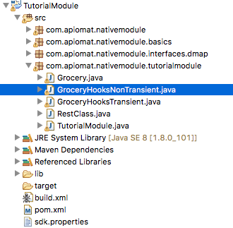 There are many classes and files already generated into the module-code. The classes that concern you the most are the ones inside the package "com.apiomat.nativemodule.[modulename]". The usage of these classes are part of the next tutorials.