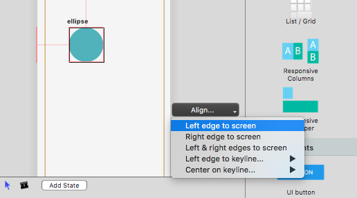 A keyline’s position is defined in proportion to the screen. For example, when you place a keyline halfway across the screen, it will take up 50% of space in every screen format. Now you can use that keyline to align elements exactly to the center of the screen.
