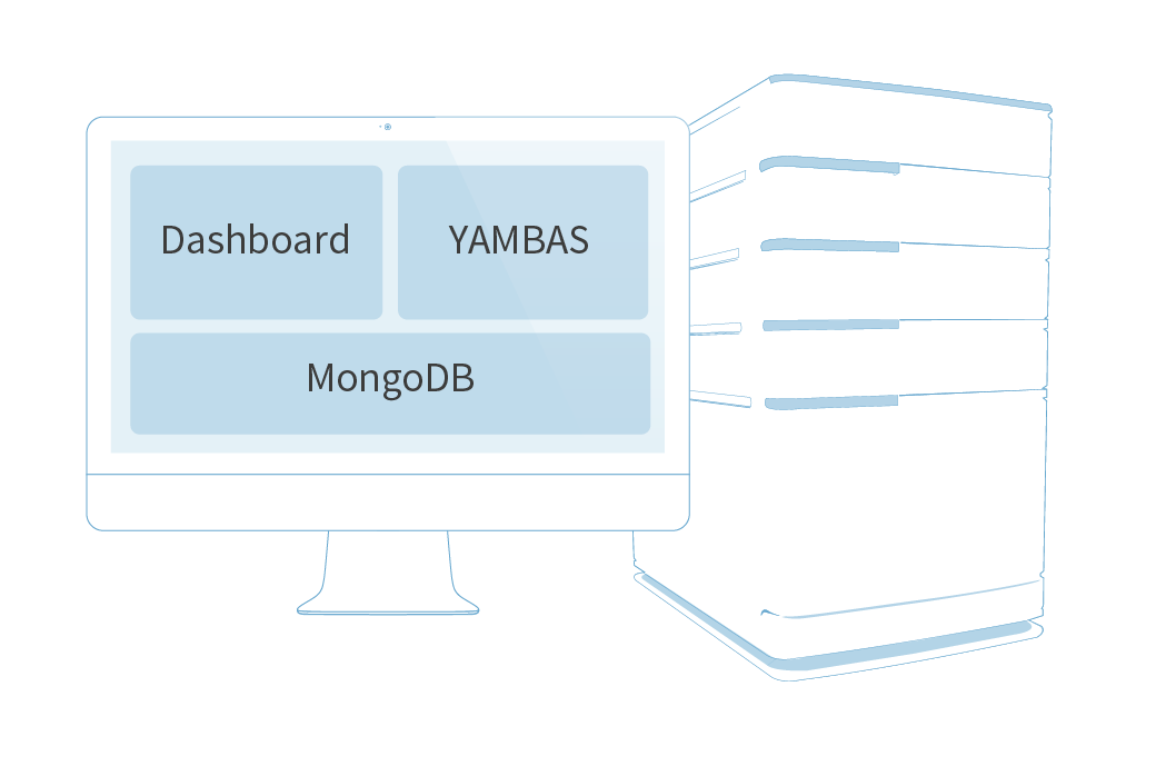 For evaluation purposes a single server is used, running all three components: Database, Dashboard and YAMBAS. If one component fails, the whole service fails.